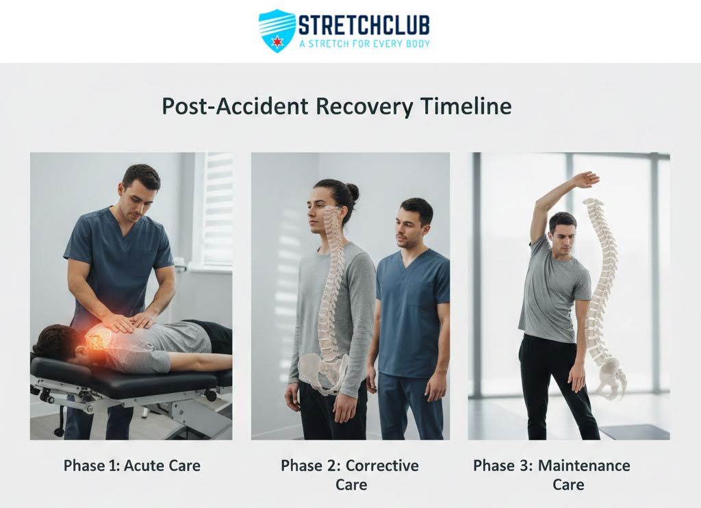At StretchClub, we create personalized treatment plans tailored to your injuries and recovery goals, combining advanced chiropractic therapy with assisted stretching. Our integrated approach provides more than temporary relief—it promotes complete healing and helps prevent chronic pain. Understanding typical recovery phases and factors affecting your timeline lets you set realistic expectations and stick to the treatment schedule for lasting results.