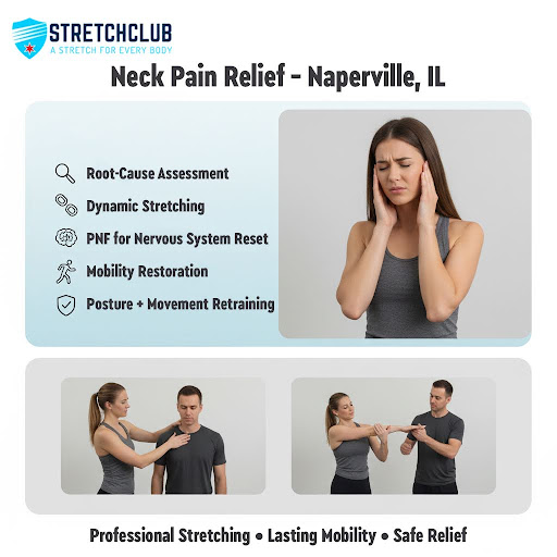 Neck stiffness that develops over months or years requires more than a quick fix. It demands safe, progressive treatment that respects your current limits while systematically restoring mobility. At StretchClub in Naperville, we guide you from chronic stiffness to genuine freedom of movement.